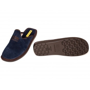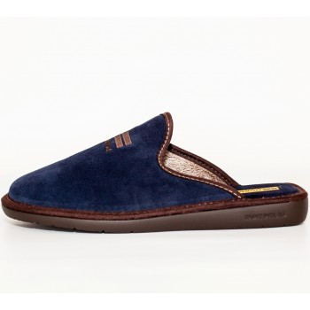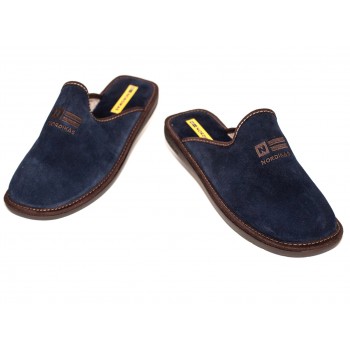 Navy Nordikas house slippers for men. Made of fabric and with a rubber sole. Enjoy the comfort, convenience, quality and manufacturing totally Made in Spain.