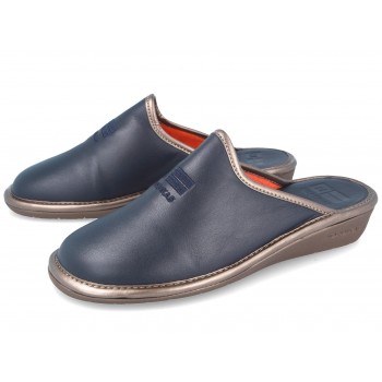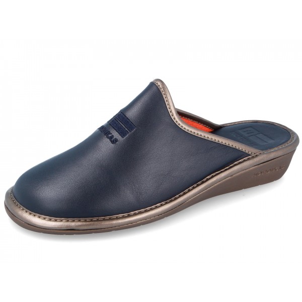 Chaussons maison Nordikas marine pour homme. Fabriqué en tissu et avec une semelle en caoutchouc. Profitez du confort, de la commodité, de la qualité et de la fabrication totalement Made in Spain.