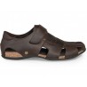 Sandales pour hommes semi-ouvertes avec fermeture velcro en cuir nappa graissé et doublure en cuir. Semelle intérieure doublée de similicuir. Semelle extérieure légère en liège naturel. FABRIQUÉ EN ESPAGNE.