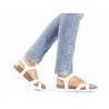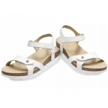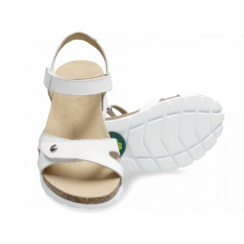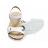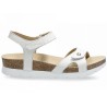Sandales plates pour femme. Fermeture velcro. Cuir Napa blanc. Doublure en cuir. Semelle intérieure anatomique. Semelle en polyuréthane souple et résistante. Hauteur du talon : 4,5 cm. Fabriqué en Espagne.
