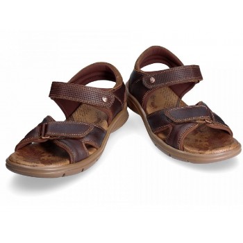 Sandalia de piel marrón con forro de lycra SANDERS BASICS Elige tu propia aventura. Sandalia de hombre con cierre de velcro, realizada en piel napa engrasada y forro interior de lycra. Planta anatómica forrada de piel. Suela de PU, ligera. HECHO EN ESPAÑA.