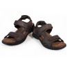 Sandalia de hombre semiabierta con cierre de velcro, realizada en piel napa engrasada y forro interior de piel.
