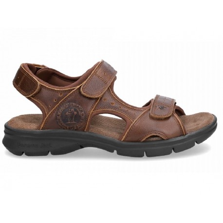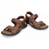 Sandalia de hombre semiabierta con cierre de velcro, realizada en piel napa engrasada y forro interior de piel.