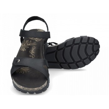 Sandali in pelle nera con fodera in pelle BASI SULIA Benvenuto l'estate. Sandali da donna con plateau e chiusura in velcro in nappa ingrassata e fodera in pelle. Soletta foderata di leither anatomicamente formata. Suola in PU combinata con sughero naturale leggero. Altezza della piattaforma 5 cm. FATTO IN SPAGNA.